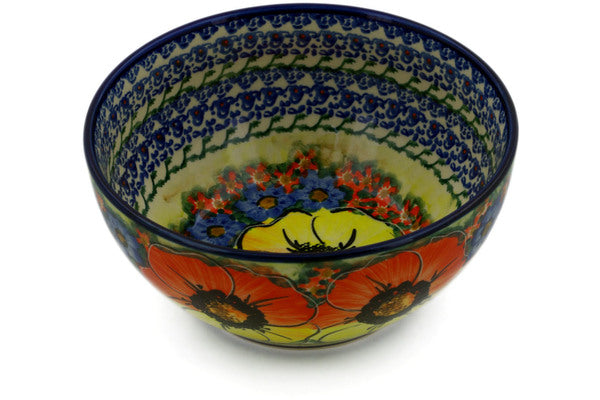 This Mystical Garden 6" Bowl was handmade and hand decorated in Boleslawiec, Poland by skilled artisans according to old traditional methods. This is a Polish pottery Signature Unikat, which means that it has been hand painted with both sponges and brushes and it is signed by the artist who painted it. Unikat pieces are the most intricate works of art. Larger Unikat items take hours of very careful work to finish. This Polish stoneware is microwave, dishwasher, freezer, and oven safe up to 480°F. It does not contain lead or cadmium. It is part of the Mystical Garden Collection.