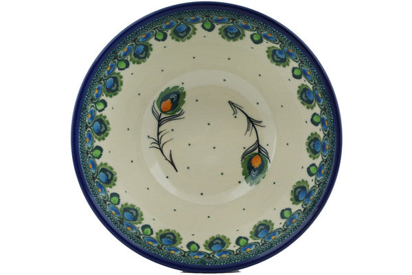 This Peacock Feather 6" Bowl was handmade and hand decorated in Boleslawiec, Poland by skilled artisans according to old traditional methods. This Polish stoneware is microwave, dishwasher, freezer, and oven safe up to 480°F. It does not contain lead or cadmium. It is part of the Peacock Feather Collection.