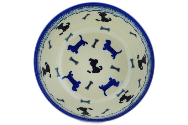 This Puppy Pleasure 5" Bowl was handmade and hand decorated in Boleslawiec, Poland by skilled artisans according to old traditional methods. This Polish stoneware is microwave, dishwasher, freezer, and oven safe up to 480°F. It does not contain lead or cadmium. It is part of the Puppy Pleasure Collection.