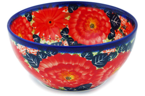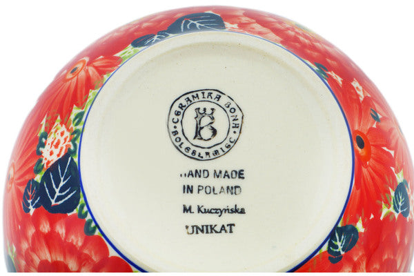 This Radiant Red Garden 6" Bowl was handmade and hand decorated in Boleslawiec, Poland by skilled artisans according to old traditional methods. This is a Polish pottery Signature Unikat, which means that it has been hand painted with both sponges and brushes and it is signed by the artist who painted it. Unikat pieces are the most intricate works of art. Larger Unikat items take hours of very careful work to finish. This Polish stoneware is microwave, dishwasher, freezer, and oven safe up to 480°F. It does not contain lead or cadmium. It is part of the Radiant Red Garden Collection.