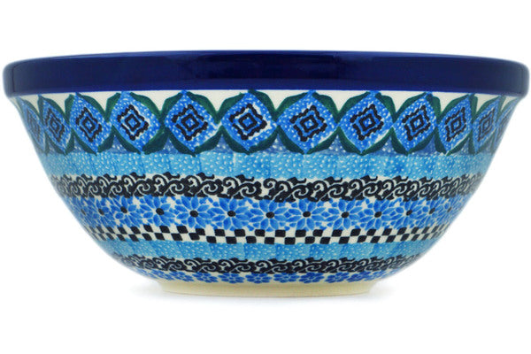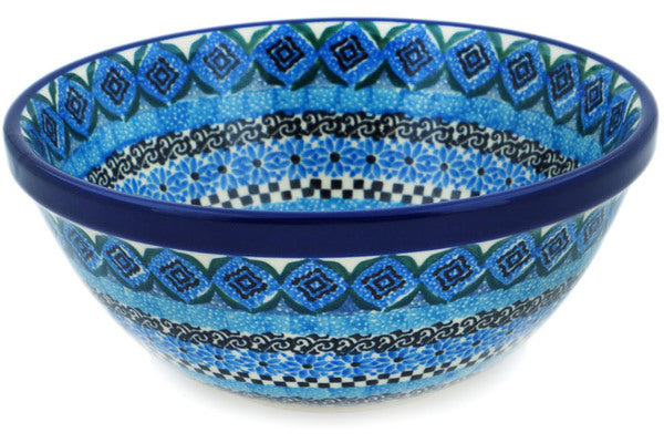 This Sparkling Sea 6" Bowl was handmade and hand decorated in Boleslawiec, Poland by skilled artisans according to old traditional methods. This is a Polish pottery Signature Unikat, which means that it has been hand painted with both sponges and brushes and it is signed by the artist who painted it. Unikat pieces are the most intricate works of art. Larger Unikat items take hours of very careful work to finish. This Polish stoneware is microwave, dishwasher, freezer, and oven safe up to 480°F. It does not contain lead or cadmium. It is part of the Sparkling Sea Collection.