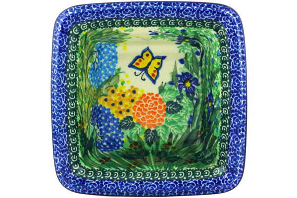 This Spring Garden 6" Bowl was handmade and hand decorated in Boleslawiec, Poland by skilled artisans according to old traditional methods. This is a Polish pottery Signature Unikat, which means that it has been hand painted with both sponges and brushes and it is signed by the artist who painted it. Unikat pieces are the most intricate works of art. Larger Unikat items take hours of very careful work to finish. This Polish stoneware is microwave, dishwasher, freezer, and oven safe up to 480°F. It does not contain lead or cadmium. It is part of the Spring Garden Collection.
