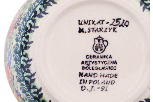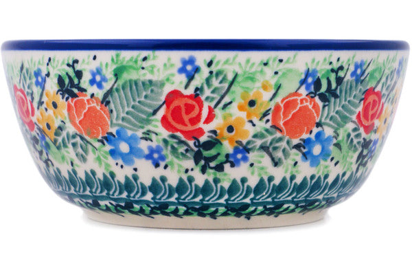 This Vibrant Bouquet 6" Bowl was handmade and hand decorated in Boleslawiec, Poland by skilled artisans according to old traditional methods. This is a Polish pottery Signature Unikat, which means that it has been hand painted with both sponges and brushes and it is signed by the artist who painted it. Unikat pieces are the most intricate works of art. Larger Unikat items take hours of very careful work to finish. This Polish stoneware is microwave, dishwasher, freezer, and oven safe up to 480°F. It does not contain lead or cadmium. It is part of the Vibrant Bouquet Collection.