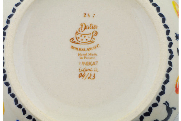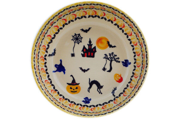 This All Hallow's Eve 7" Bowl was handmade and hand decorated in Boleslawiec, Poland by skilled artisans according to old traditional methods. This is a Polish pottery Signature Unikat, which means that it has been hand painted with both sponges and brushes and it is signed by the artist who painted it. Unikat pieces are the most intricate works of art. Larger Unikat items take hours of very careful work to finish. This Polish stoneware is microwave, dishwasher, freezer, and oven safe up to 480°F. It does not contain lead or cadmium. It is part of the All Hallow's Eve Collection.
