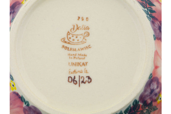 This Blossoming Purple Harmony 7" Bowl was handmade and hand decorated in Boleslawiec, Poland by skilled artisans according to old traditional methods. This is a Polish pottery Signature Unikat, which means that it has been hand painted with both sponges and brushes and it is signed by the artist who painted it. Unikat pieces are the most intricate works of art. Larger Unikat items take hours of very careful work to finish. This Polish stoneware is microwave, dishwasher, freezer, and oven safe up to 480°F. It does not contain lead or cadmium. It is part of the Blossoming Purple Harmony Collection.