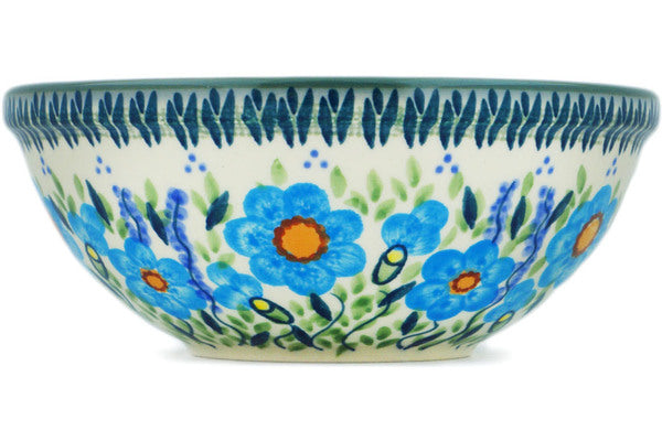 This Bright Blue Happiness 7" Bowl was handmade and hand decorated in Boleslawiec, Poland by skilled artisans according to old traditional methods. This is a Polish pottery Signature Unikat, which means that it has been hand painted with both sponges and brushes and it is signed by the artist who painted it. Unikat pieces are the most intricate works of art. Larger Unikat items take hours of very careful work to finish. This Polish stoneware is microwave, dishwasher, freezer, and oven safe up to 480°F. It does not contain lead or cadmium. It is part of the Bright Blue Happiness Collection.