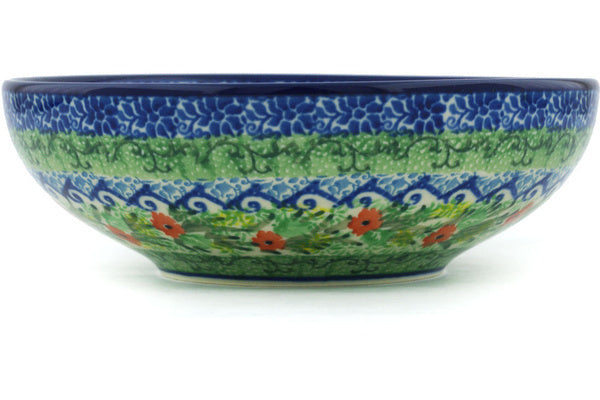 This Joyful Blue 7" Bowl was handmade and hand decorated in Boleslawiec, Poland by skilled artisans according to old traditional methods. This is a Polish pottery Signature Unikat, which means that it has been hand painted with both sponges and brushes and it is signed by the artist who painted it. Unikat pieces are the most intricate works of art. Larger Unikat items take hours of very careful work to finish. This Polish stoneware is microwave, dishwasher, freezer, and oven safe up to 480°F. It does not contain lead or cadmium. It is part of the Joyful Blue Collection.