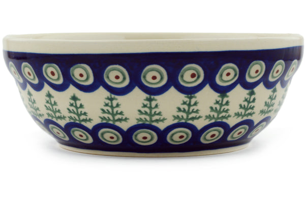 This Peacock Christmas 7" Bowl was handmade and hand decorated in Boleslawiec, Poland by skilled artisans according to old traditional methods. This Polish stoneware is microwave, dishwasher, freezer, and oven safe up to 480°F. It does not contain lead or cadmium. It is part of the Peacock Christmas Collection.