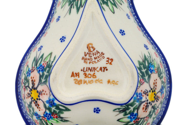 This Perfect Garden 7" Pear Shaped Bowl was handmade and hand decorated in Boleslawiec, Poland by skilled artisans according to old traditional methods. This is a Polish pottery Signature Unikat, which means that it has been hand painted with both sponges and brushes and it is signed by the artist who painted it. Unikat pieces are the most intricate works of art. Larger Unikat items take hours of very careful work to finish. This Polish stoneware is microwave, dishwasher, freezer, and oven safe up to 480°F. It does not contain lead or cadmium. It is part of the Perfect Garden Collection.