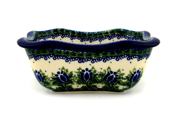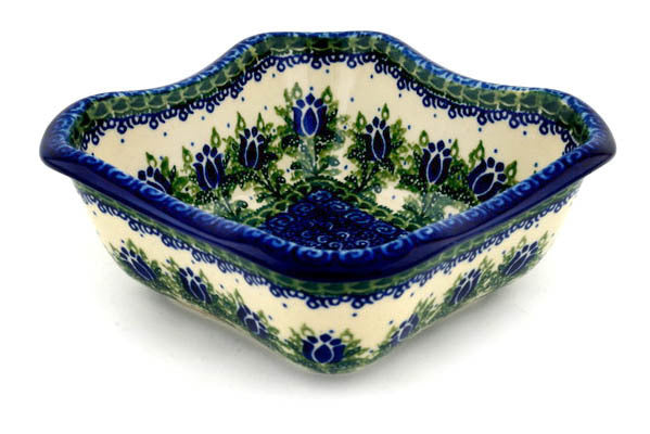 This Tulip Motif 7" Bowl was handmade and hand decorated in Boleslawiec, Poland by skilled artisans according to old traditional methods. This is a Polish pottery Signature Unikat, which means that it has been hand painted with both sponges and brushes and it is signed by the artist who painted it. Unikat pieces are the most intricate works of art. Larger Unikat items take hours of very careful work to finish. This Polish stoneware is microwave, dishwasher, freezer, and oven safe up to 480°F. It does not contain lead or cadmium. It is part of the Tulip Motif Collection.