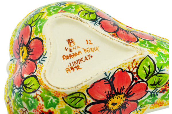 This Wild Peonies 7" Pear Shaped Bowl was handmade and hand decorated in Boleslawiec, Poland by skilled artisans according to old traditional methods. This is a Polish pottery Signature Unikat, which means that it has been hand painted with both sponges and brushes and it is signed by the artist who painted it. Unikat pieces are the most intricate works of art. Larger Unikat items take hours of very careful work to finish. This Polish stoneware is microwave, dishwasher, freezer, and oven safe up to 480°F. It does not contain lead or cadmium. It is part of the Wild Peonies Collection.