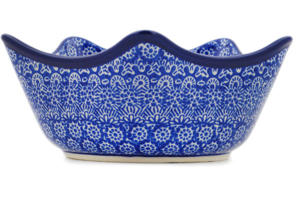 This Winter Frost 7" Star Shaped Bowl was handmade and hand decorated in Boleslawiec, Poland by skilled artisans according to old traditional methods. This Polish stoneware is microwave, dishwasher, freezer, and oven safe up to 480°F. It does not contain lead or cadmium. It is part of the Winter Frost Collection.