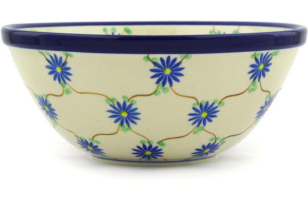This Aster Trellis 8" Bowl was handmade and hand decorated in Boleslawiec, Poland by skilled artisans according to old traditional methods. This Polish stoneware is microwave, dishwasher, freezer, and oven safe up to 480°F. It does not contain lead or cadmium. It is part of the Aster Trellis Collection.