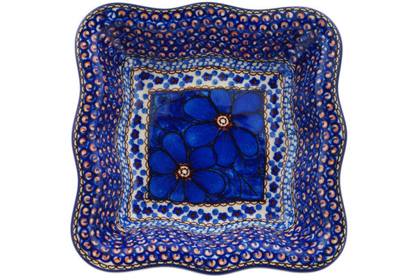 This Cobalt Poppies 8" Bowl was handmade and hand decorated in Boleslawiec, Poland by skilled artisans according to old traditional methods. This is a Polish pottery Signature Unikat, which means that it has been hand painted with both sponges and brushes and it is signed by the artist who painted it. Unikat pieces are the most intricate works of art. Larger Unikat items take hours of very careful work to finish. This Polish stoneware is microwave, dishwasher, freezer, and oven safe up to 480°F. It does not contain lead or cadmium. It is part of the Cobalt Poppies Collection.