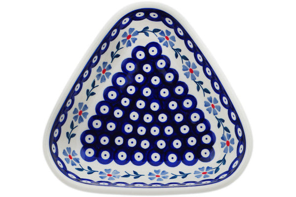 This Peacock Forget-Me-Not 8" Bowl was handmade and hand decorated in Boleslawiec, Poland by skilled artisans according to old traditional methods. This Polish stoneware is microwave, dishwasher, freezer, and oven safe up to 480°F. It does not contain lead or cadmium. It is part of the Peacock Forget-Me-Not Collection.