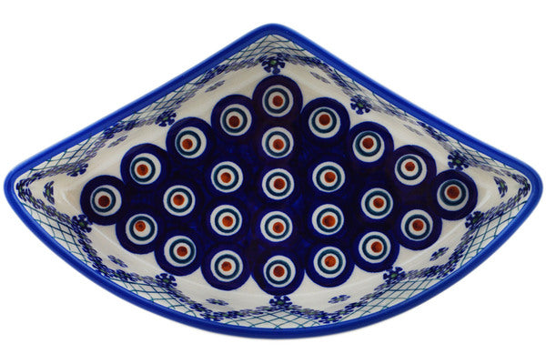 This Peacock Lattice 8" Bowl was handmade and hand decorated in Boleslawiec, Poland by skilled artisans according to old traditional methods. This is a Polish pottery Signature Unikat, which means that it has been hand painted with both sponges and brushes and it is signed by the artist who painted it. Unikat pieces are the most intricate works of art. Larger Unikat items take hours of very careful work to finish. This Polish stoneware is microwave, dishwasher, freezer, and oven safe up to 480°F. It does not contain lead or cadmium. It is part of the Peacock Lattice Collection.