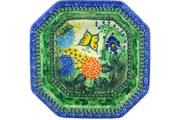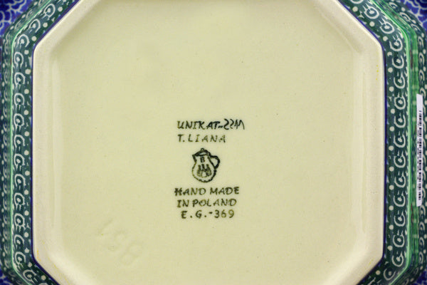 This Spring Garden 8" Bowl was handmade and hand decorated in Boleslawiec, Poland by skilled artisans according to old traditional methods. This is a Polish pottery Signature Unikat, which means that it has been hand painted with both sponges and brushes and it is signed by the artist who painted it. Unikat pieces are the most intricate works of art. Larger Unikat items take hours of very careful work to finish. This Polish stoneware is microwave, dishwasher, freezer, and oven safe up to 480°F. It does not contain lead or cadmium. It is part of the Spring Garden Collection.