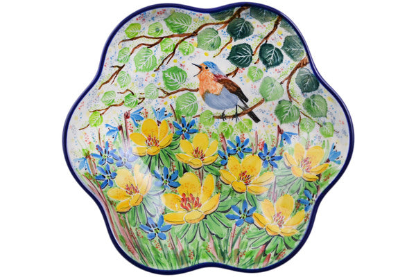 Scalloped Fluted Bowl 8" Welcome Spring Theme UNIKAT