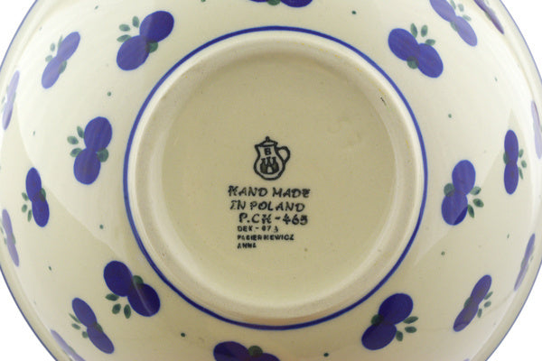 This Wild Blueberry 8" Bowl was handmade and hand decorated in Boleslawiec, Poland by skilled artisans according to old traditional methods. This Polish stoneware is microwave, dishwasher, freezer, and oven safe up to 480°F. It does not contain lead or cadmium. It is part of the Wild Blueberry Collection.