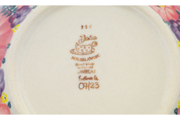 This Blossoming Purple Harmony 9" Bowl was handmade and hand decorated in Boleslawiec, Poland by skilled artisans according to old traditional methods. This is a Polish pottery Signature Unikat, which means that it has been hand painted with both sponges and brushes and it is signed by the artist who painted it. Unikat pieces are the most intricate works of art. Larger Unikat items take hours of very careful work to finish. This Polish stoneware is microwave, dishwasher, freezer, and oven safe up to 480°F. It does not contain lead or cadmium. It is part of the Blossoming Purple Harmony Collection.
