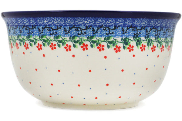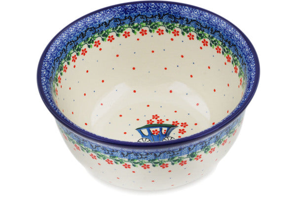 This Magical Carriage 9" Bowl was handmade and hand decorated in Boleslawiec, Poland by skilled artisans according to old traditional methods. This Polish stoneware is microwave, dishwasher, freezer, and oven safe up to 480°F. It does not contain lead or cadmium. It is part of the Magical Carriage Collection.