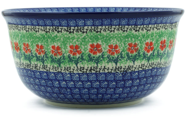 This Maraschino 9" Bowl was handmade and hand decorated in Boleslawiec, Poland by skilled artisans according to old traditional methods. This Polish stoneware is microwave, dishwasher, freezer, and oven safe up to 480°F. It does not contain lead or cadmium. It is part of the Maraschino Collection.