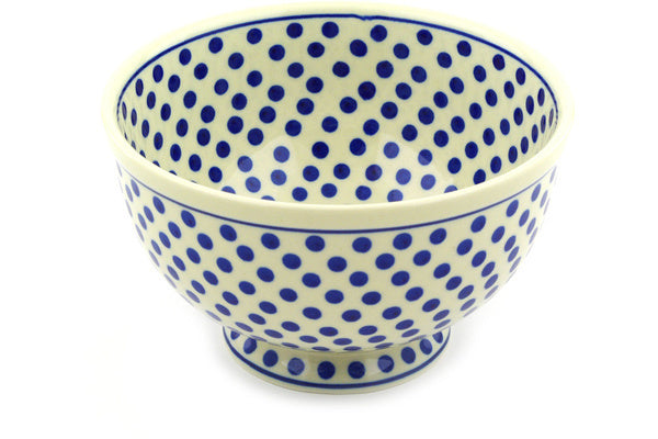 This Polka Dot Delight 9" Bowl with Pedestal was handmade and hand decorated in Boleslawiec, Poland by skilled artisans according to old traditional methods. This Polish stoneware is microwave, dishwasher, freezer, and oven safe up to 480°F. It does not contain lead or cadmium. It is part of the Polka Dot Delight Collection.