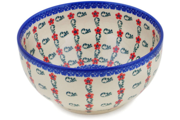 This Red Flower Lattice 9" Bowl was handmade and hand decorated in Boleslawiec, Poland by skilled artisans according to old traditional methods. This Polish stoneware is microwave, dishwasher, freezer, and oven safe up to 480°F. It does not contain lead or cadmium. It is part of the Red Flower Lattice Collection.