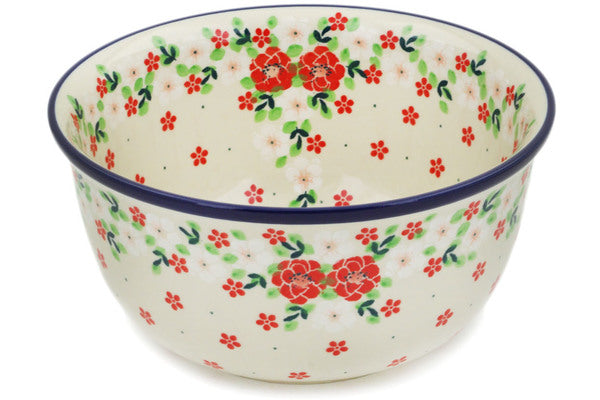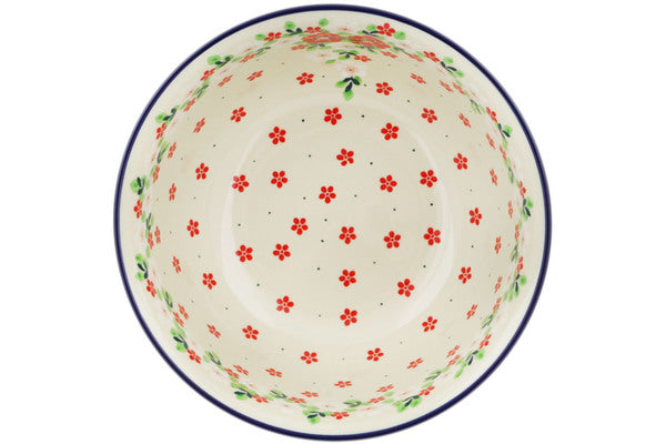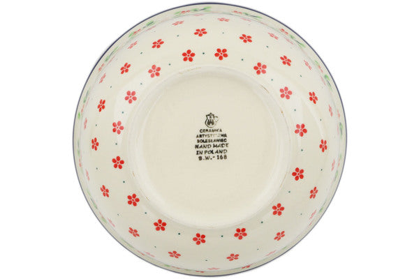 This Rosy Cheeks 9" Bowl was handmade and hand decorated in Boleslawiec, Poland by skilled artisans according to old traditional methods. This Polish stoneware is microwave, dishwasher, freezer, and oven safe up to 480°F. It does not contain lead or cadmium. It is part of the Rosy Cheeks Collection.
