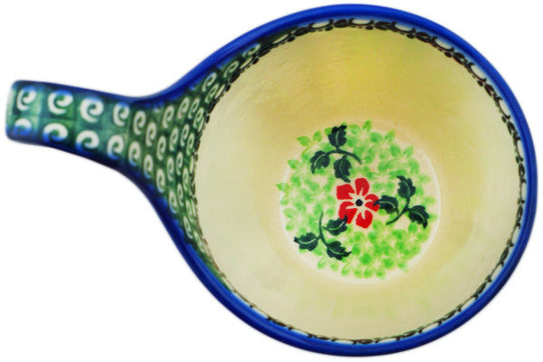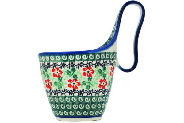 This Poppies Charm 7" Bowl with Loop-Handle was handmade and hand decorated in Boleslawiec, Poland by skilled artisans according to old traditional methods. This is a Polish pottery Signature Unikat, which means that it has been hand painted with both sponges and brushes and it is signed by the artist who painted it. Unikat pieces are the most intricate works of art. Larger Unikat items take hours of very careful work to finish. This Polish stoneware is microwave, dishwasher, freezer, and oven safe up to 480°F. It does not contain lead or cadmium. It is part of the Poppies Charm Collection.