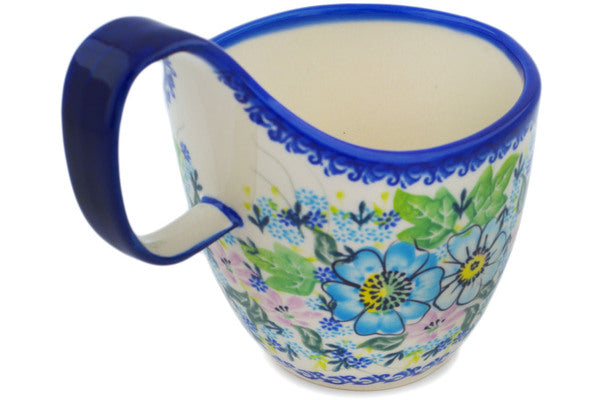 This Robins Egg 7" Bowl with Loop-Handle was handmade and hand decorated in Boleslawiec, Poland by skilled artisans according to old traditional methods. This is a Polish pottery Signature Unikat, which means that it has been hand painted with both sponges and brushes and it is signed by the artist who painted it. Unikat pieces are the most intricate works of art. Larger Unikat items take hours of very careful work to finish. This Polish stoneware is microwave, dishwasher, freezer, and oven safe up to 480°F. It does not contain lead or cadmium. It is part of the Robins Egg Collection.