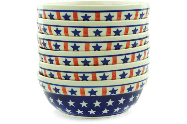 This Americana Set of 6 Bowls was handmade and hand decorated in Boleslawiec, Poland by skilled artisans according to old traditional methods. This Polish stoneware is microwave, dishwasher, freezer, and oven safe up to 480°F. It does not contain lead or cadmium. It is part of the Americana Collection.