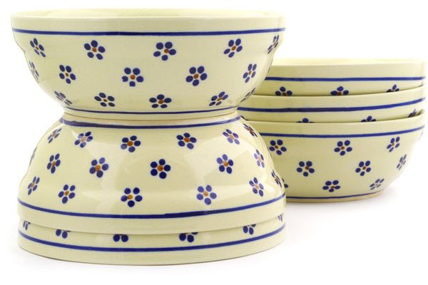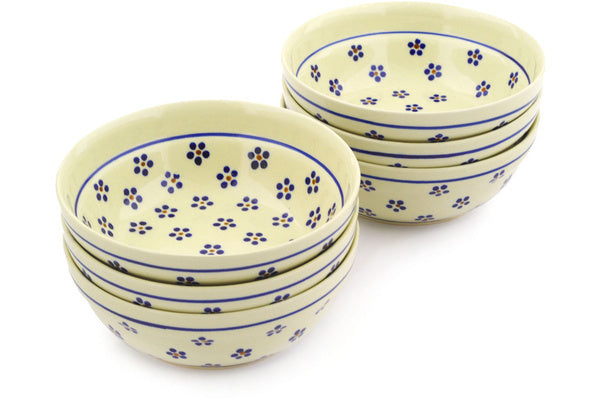 This Daisy Dots Set of 6 Bowls was handmade and hand decorated in Boleslawiec, Poland by skilled artisans according to old traditional methods. This Polish stoneware is microwave, dishwasher, freezer, and oven safe up to 480°F. It does not contain lead or cadmium. It is part of the Daisy Dots Collection.