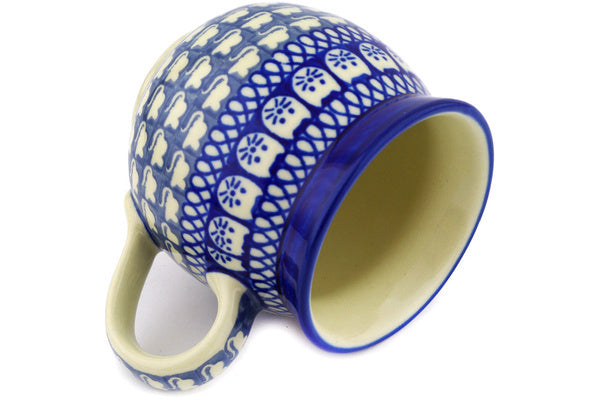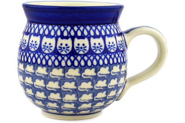 This Cat And Mouse Brigade 12oz Bubble Mug was handmade and hand decorated in Boleslawiec, Poland by skilled artisans according to old traditional methods. This is a Polish pottery Signature Unikat, which means that it has been hand painted with both sponges and brushes and it is signed by the artist who painted it. Unikat pieces are the most intricate works of art. Larger Unikat items take hours of very careful work to finish. This Polish stoneware is microwave, dishwasher, freezer, and oven safe up to 480°F. It does not contain lead or cadmium. It is part of the Cat And Mouse Brigade Collection.