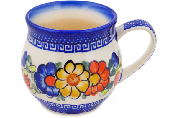 This Fall Garden 12 oz Bubble Mug was handmade and hand decorated in Boleslawiec, Poland by skilled artisans according to old traditional methods. This is a Polish pottery Signature Unikat, which means that it has been hand painted with both sponges and brushes and it is signed by the artist who painted it. Unikat pieces are the most intricate works of art. Larger Unikat items take hours of very careful work to finish. This Polish stoneware is microwave, dishwasher, freezer, and oven safe up to 480°F. It does not contain lead or cadmium. It is part of the Fall Garden Collection.