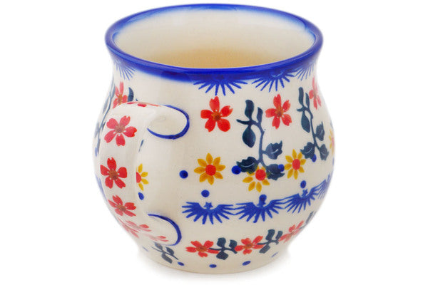 This Red Sunflower 12 oz Bubble Mug was handmade and hand decorated in Boleslawiec, Poland by skilled artisans according to old traditional methods. This Polish stoneware is microwave, dishwasher, freezer, and oven safe up to 480°F. It does not contain lead or cadmium. It is part of the Red Sunflower Collection.