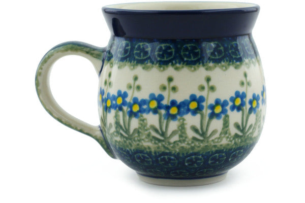 This Blue Daisy Circle 12oz Bubble Mug was handmade and hand decorated in Boleslawiec, Poland by skilled artisans according to old traditional methods. This Polish stoneware is microwave, dishwasher, freezer, and oven safe up to 480°F. It does not contain lead or cadmium. It is part of the Blue Daisy Circle Collection.