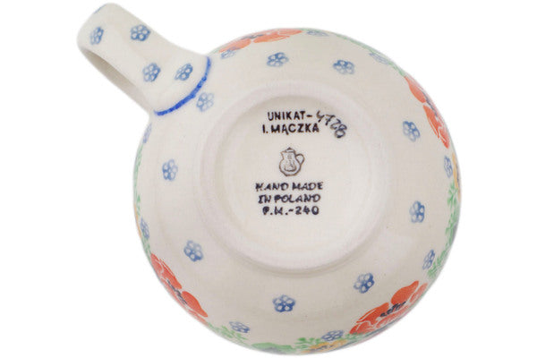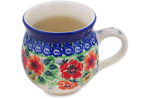This Candy Red Poppy 12oz Bubble Mug was handmade and hand decorated in Boleslawiec, Poland by skilled artisans according to old traditional methods. This is a Polish pottery Signature Unikat, which means that it has been hand painted with both sponges and brushes and it is signed by the artist who painted it. Unikat pieces are the most intricate works of art. Larger Unikat items take hours of very careful work to finish. This Polish stoneware is microwave, dishwasher, freezer, and oven safe up to 480°F. It does not contain lead or cadmium. It is part of the Candy Red Poppy Collection.