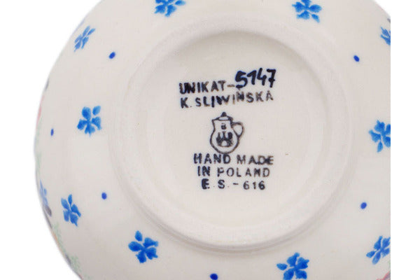 This Fascinating Flora 12oz Bubble Mug was handmade and hand decorated in Boleslawiec, Poland by skilled artisans according to old traditional methods. This is a Polish pottery Signature Unikat, which means that it has been hand painted with both sponges and brushes and it is signed by the artist who painted it. Unikat pieces are the most intricate works of art. Larger Unikat items take hours of very careful work to finish. This Polish stoneware is microwave, dishwasher, freezer, and oven safe up to 480°F. It does not contain lead or cadmium. It is part of the Fascinating Flora Collection.