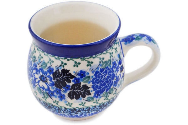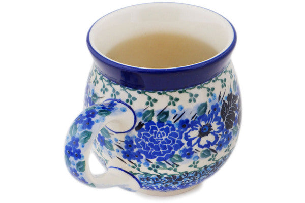 This Hummingbird Blue 12oz Bubble Mug was handmade and hand decorated in Boleslawiec, Poland by skilled artisans according to old traditional methods. This is a Polish pottery Signature Unikat, which means that it has been hand painted with both sponges and brushes and it is signed by the artist who painted it. Unikat pieces are the most intricate works of art. Larger Unikat items take hours of very careful work to finish. This Polish stoneware is microwave, dishwasher, freezer, and oven safe up to 480°F. It does not contain lead or cadmium. It is part of the Hummingbird Blue Collection.