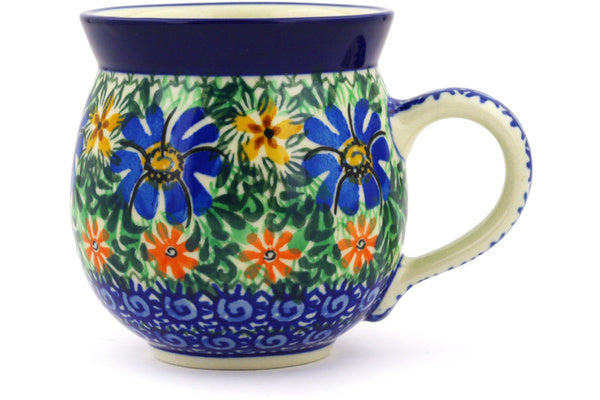 This Profusion 12oz Bubble Mug was handmade and hand decorated in Boleslawiec, Poland by skilled artisans according to old traditional methods. This is a Polish pottery Signature Unikat, which means that it has been hand painted with both sponges and brushes and it is signed by the artist who painted it. Unikat pieces are the most intricate works of art. Larger Unikat items take hours of very careful work to finish. This Polish stoneware is microwave, dishwasher, freezer, and oven safe up to 480°F. It does not contain lead or cadmium. It is part of the Profusion Collection.