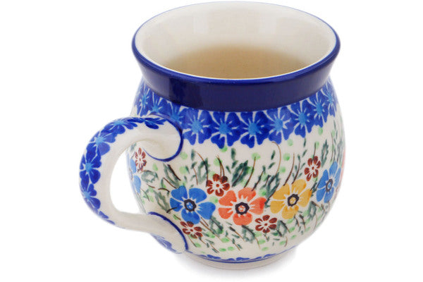 This Spring Blooms 12oz Bubble Mug was handmade and hand decorated in Boleslawiec, Poland by skilled artisans according to old traditional methods. This is a Polish pottery Signature Unikat, which means that it has been hand painted with both sponges and brushes and it is signed by the artist who painted it. Unikat pieces are the most intricate works of art. Larger Unikat items take hours of very careful work to finish. This Polish stoneware is microwave, dishwasher, freezer, and oven safe up to 480°F. It does not contain lead or cadmium. It is part of the Spring Blooms Collection.