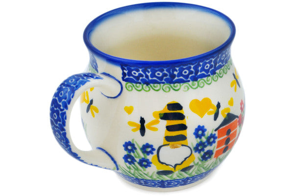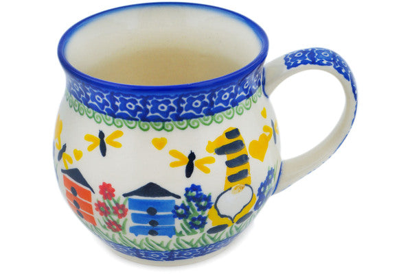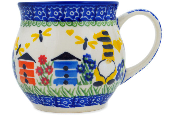 This Beekeeper Gnome 12 oz Bubble Mug was handmade and hand decorated in Boleslawiec, Poland by skilled artisans according to old traditional methods. This is a Polish pottery Signature Unikat, which means that it has been hand painted with both sponges and brushes and it is signed by the artist who painted it. Unikat pieces are the most intricate works of art. Larger Unikat items take hours of very careful work to finish. This Polish stoneware is microwave, dishwasher, freezer, and oven safe up to 480°F. It does not contain lead or cadmium. It is part of the Beekeeper Gnome Collection.