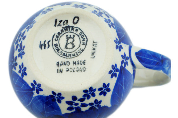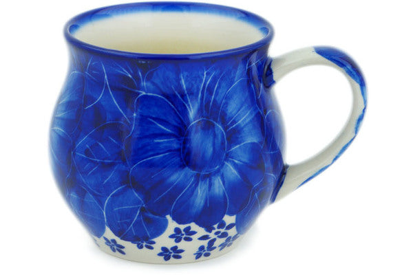 This Divine Cobalt 12 oz Bubble Mug was handmade and hand decorated in Boleslawiec, Poland by skilled artisans according to old traditional methods. This is a Polish pottery Signature Unikat, which means that it has been hand painted with both sponges and brushes and it is signed by the artist who painted it. Unikat pieces are the most intricate works of art. Larger Unikat items take hours of very careful work to finish. This Polish stoneware is microwave, dishwasher, freezer, and oven safe up to 480°F. It does not contain lead or cadmium. It is part of the Divine Cobalt Collection.