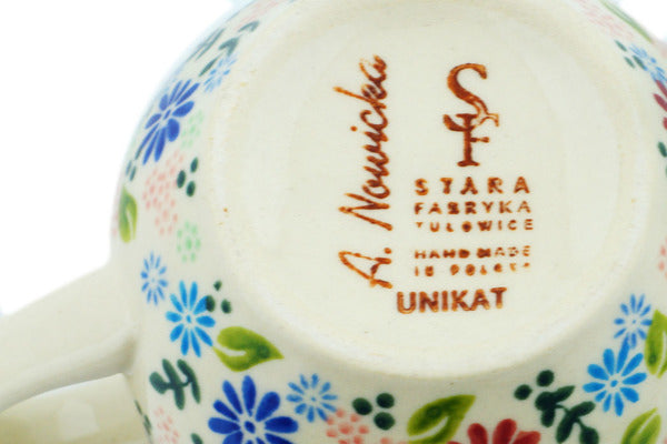 This Gerbera Garden 13 oz Bubble Mug was handmade and hand decorated in Boleslawiec, Poland by skilled artisans according to old traditional methods. This Polish stoneware is microwave, dishwasher, freezer, and oven safe up to 480°F. It does not contain lead or cadmium. It is part of the Gerbera Garden Collection.