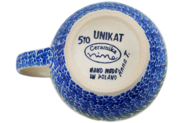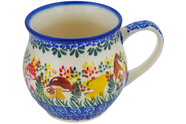 This Mushroom Love 12 oz Bubble Mug was handmade and hand decorated in Boleslawiec, Poland by skilled artisans according to old traditional methods. This is a Polish pottery Signature Unikat, which means that it has been hand painted with both sponges and brushes and it is signed by the artist who painted it. Unikat pieces are the most intricate works of art. Larger Unikat items take hours of very careful work to finish. This Polish stoneware is microwave, dishwasher, freezer, and oven safe up to 480°F. It does not contain lead or cadmium. It is part of the Mushroom Love Collection.
