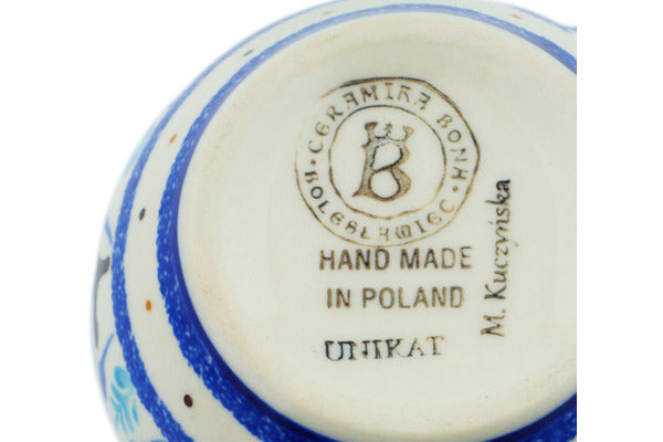 This Teddy's Love 13 oz Bubble Mug was handmade and hand decorated in Boleslawiec, Poland by skilled artisans according to old traditional methods. This is a Polish pottery Signature Unikat, which means that it has been hand painted with both sponges and brushes and it is signed by the artist who painted it. Unikat pieces are the most intricate works of art. Larger Unikat items take hours of very careful work to finish. This Polish stoneware is microwave, dishwasher, freezer, and oven safe up to 480°F. It does not contain lead or cadmium. It is part of the Teddy's Love Collection.
