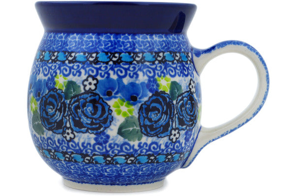 This Garden At Midnight 16 oz Bubble Mug was handmade and hand decorated in Boleslawiec, Poland by skilled artisans according to old traditional methods. This is a Polish pottery Signature Unikat, which means that it has been hand painted with both sponges and brushes and it is signed by the artist who painted it. Unikat pieces are the most intricate works of art. Larger Unikat items take hours of very careful work to finish. This Polish stoneware is microwave, dishwasher, freezer, and oven safe up to 480°F. It does not contain lead or cadmium. It is part of the Garden At Midnight Collection.