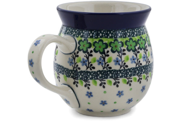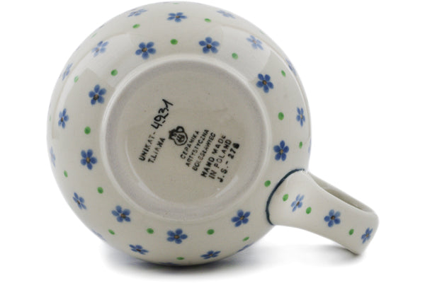 This Green Chrysanthemums 16 oz Bubble Mug was handmade and hand decorated in Boleslawiec, Poland by skilled artisans according to old traditional methods. This is a Polish pottery Signature Unikat, which means that it has been hand painted with both sponges and brushes and it is signed by the artist who painted it. Unikat pieces are the most intricate works of art. Larger Unikat items take hours of very careful work to finish. This Polish stoneware is microwave, dishwasher, freezer, and oven safe up to 480°F. It does not contain lead or cadmium. It is part of the Green Chrysanthemums Collection.