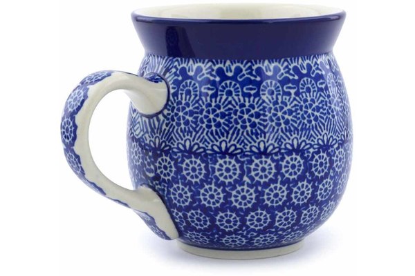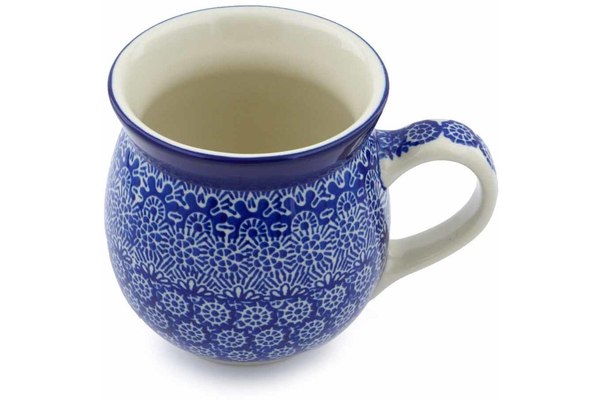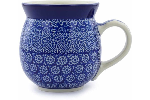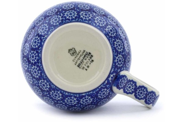 This Winter Frost 16 oz Bubble Mug was handmade and hand decorated in Boleslawiec, Poland by skilled artisans according to old traditional methods. This Polish stoneware is microwave, dishwasher, freezer, and oven safe up to 480°F. It does not contain lead or cadmium. It is part of the Winter Frost Collection.